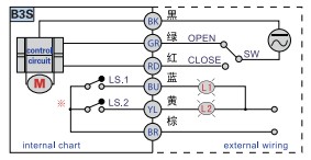 2) When Red line connected with power "-",black connected with power "+":Valve turns clockwise to fully open,micro switch S2 close and send the signal of opening fully,the client can disconnect the motor power.